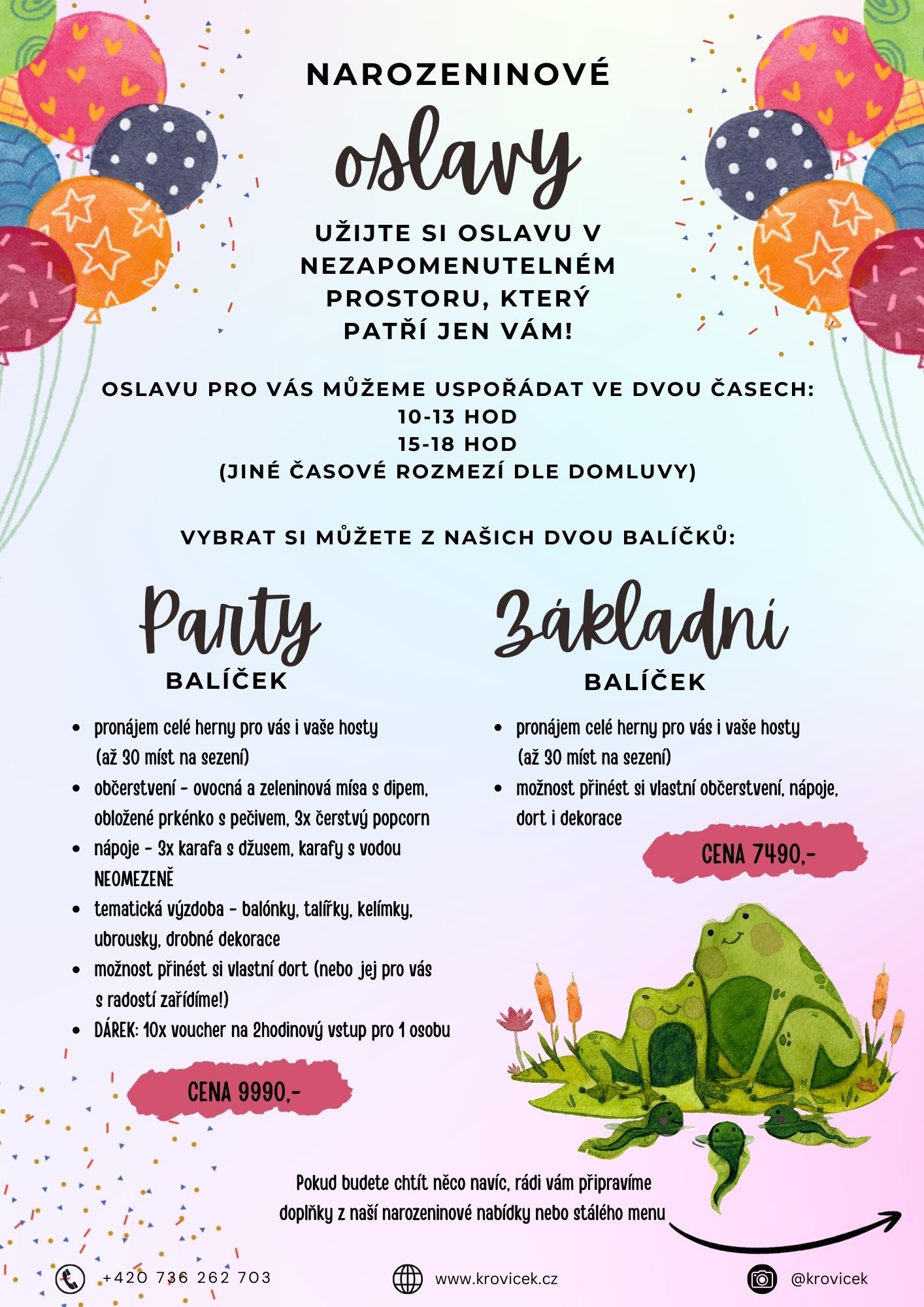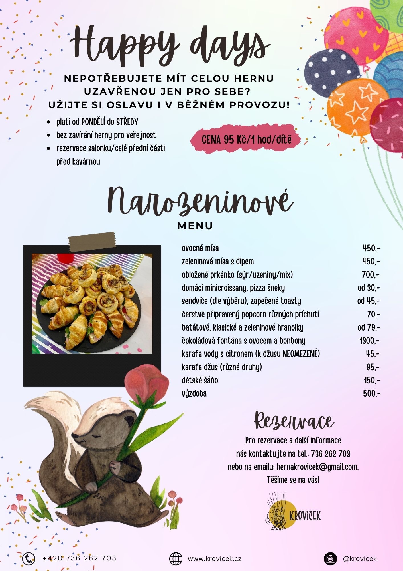 Plánujete dětskou oslavu? Máme pro Vás ideální místo. My v Křovíčku uděláme oslavu dle vašich představ. Zajistíme kompletní občerstvení i s dortem.